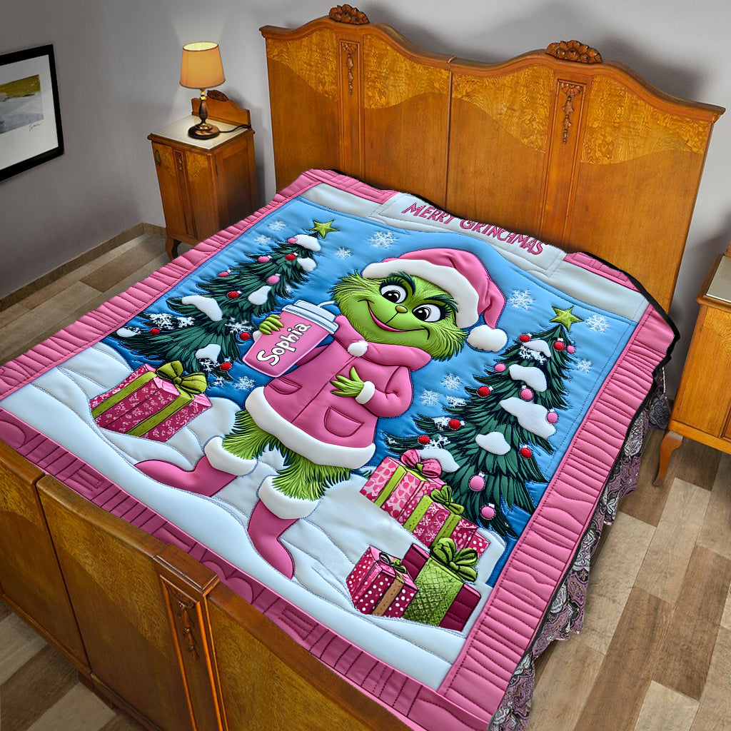Grinchy Green Lady - Personalized Stole Christmas Quilt