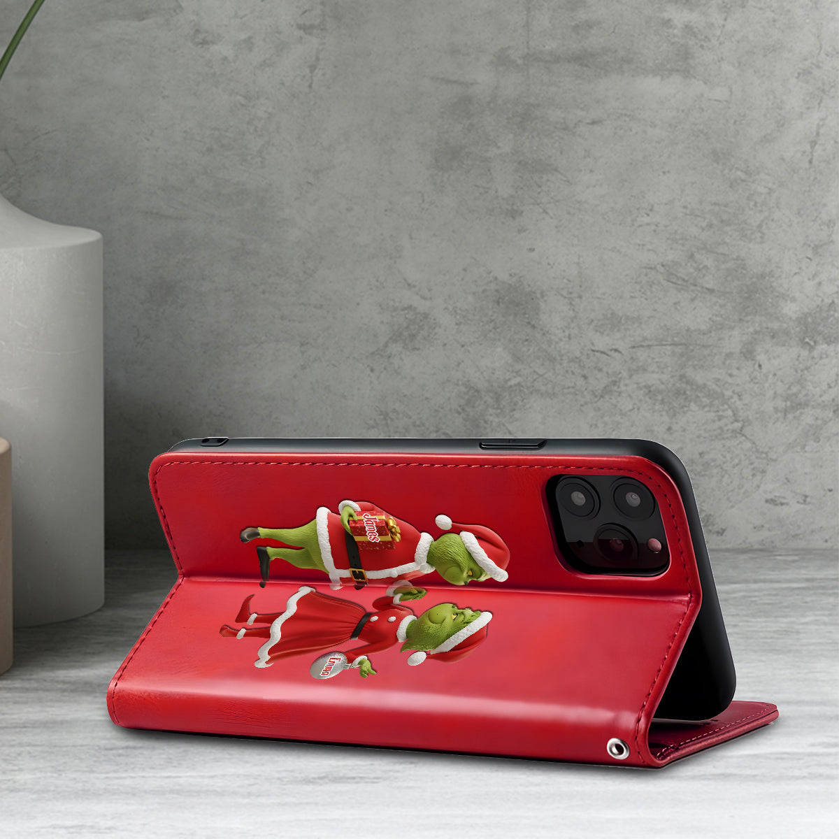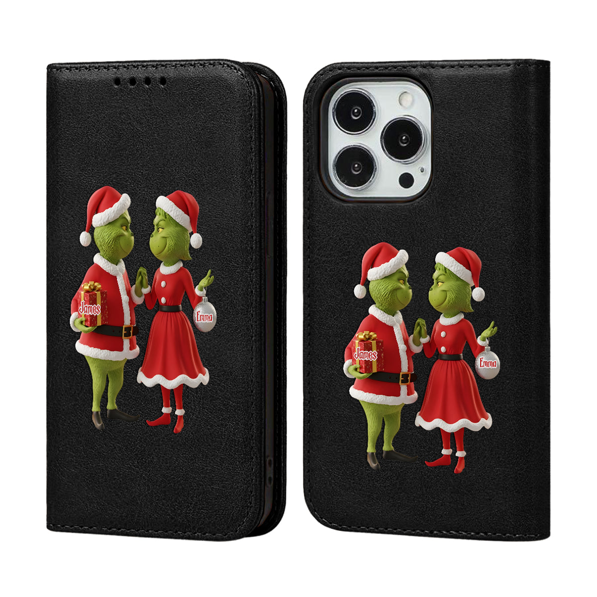 Cadeau de Noël Joyeux Grinchmas - Étui portefeuille/téléphone personnalisé avec bandoulière et motif étole de Noël