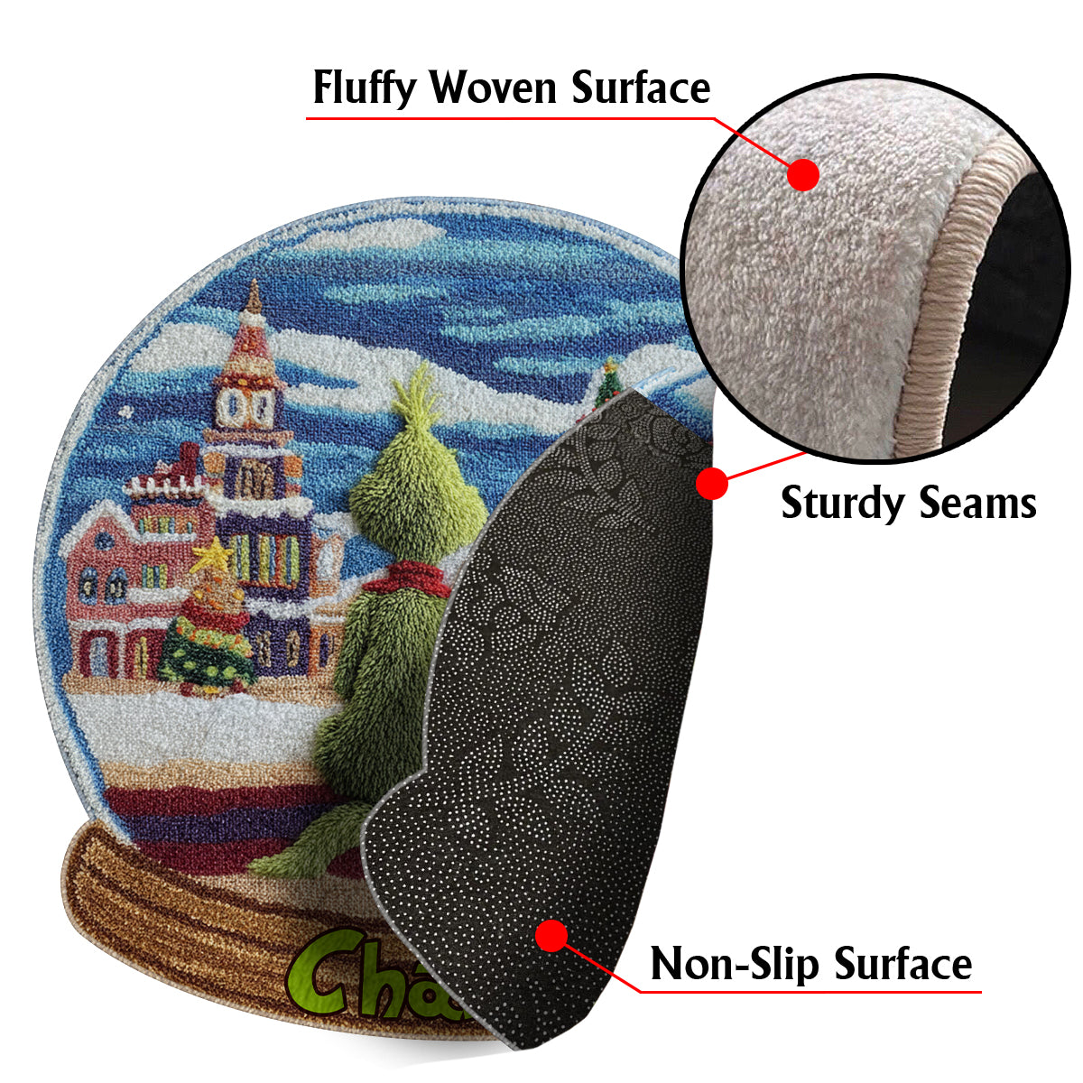 Grünes Monster mit Hund - Personalisierte Stola, rutschfester, getufteter Weihnachtsteppich