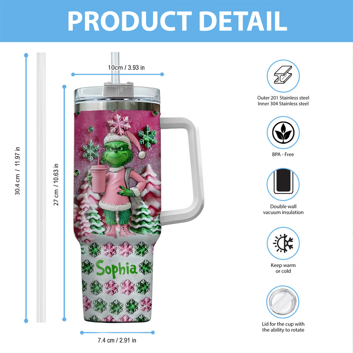 - Unser kreativer 3D-Druck verleiht Ihrem Becher eine beeindruckende und lebendige Note und spiegelt Ihre Persönlichkeit wider. Dank modernster Drucktechnologie wird das Design direkt auf das Produkt aufgebracht.